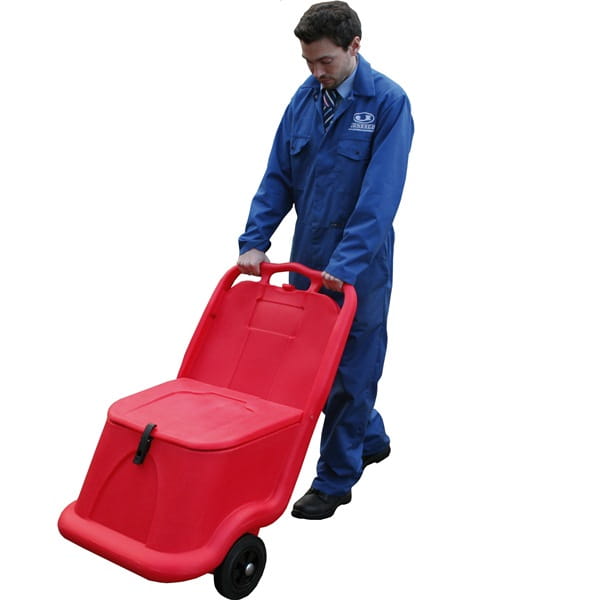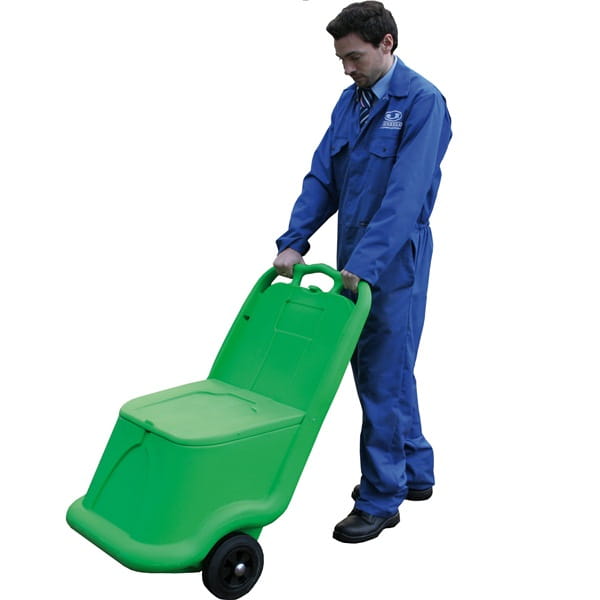 Wózek – pojemnik na materiały wyposażony jest w praktyczne, gumowane koła ułatwiające przewożenie ładunków. Kompaktowa konstrukcja wózka, doskonałe wyważenie i ergonomiczny uchwyt ułatwiają transport. Części boczne uchwytu przeznaczone są do pchania wózka, a część środkowa do jego ciągnięcia. Szerokość wózka umożliwia przeprowadzanie go przez drzwi dla ruchu pieszego. Specjalna budowa umożliwia ponadto pionowe zestawianie wielu wózków na sobie.