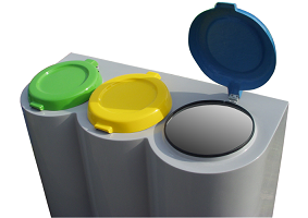 - pojemnik do segregacji wyposażony w kolorowe klapy informujące o segregowanym surowcu,