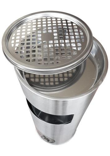 Uniwersalny kosz na śmieci pełniący funkcję popielnicy. Doskonałe wyposażenie palarni papierosów - poręczny, estetyczny nie zajmuje zbyt wiele miejsca,