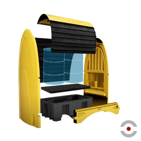 Stanowisko robocze z zamykaną pokrywą (żaluzją) służy do bezpiecznego magazynowania i eksploatacji cieczy w dwóch beczkach 200 l, minimalizując ryzyko wycieków i chroniąc substancje przed czynnikami zewnętrznymi. Idealne rozwiązanie do magazynów, warsztatów oraz miejsc składowania i dozowania substancji niebezpiecznych tam, gdzie konieczna jest ochrona środowiska oraz zachowanie porządku.