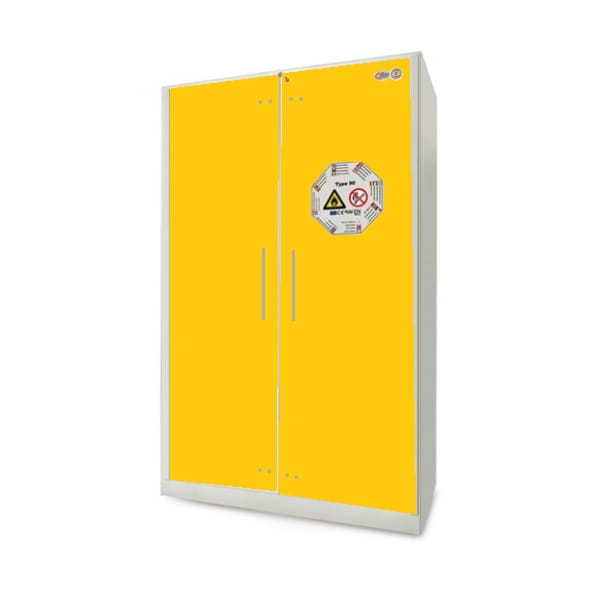 Funkcjonalna szafa do bezpiecznego przechowywania produktów łatwopalnych, ognioodporność 90 minut. Wykonana z galwanizowanej stali o grubości 1-1.5 mm, pokrytej powłoką epoksydową, metodą malowania proszkowego (grubość powłoki powyżej 90 mikronów).