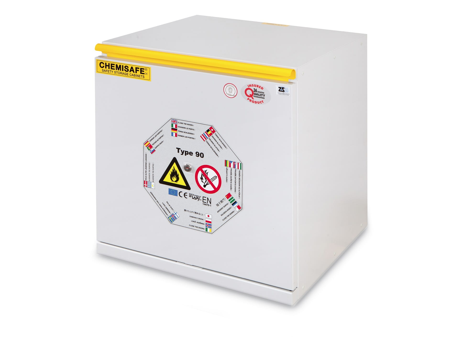 Podstołowa szafa ognioodporna przeznaczona do przechowywania materiałów łatwopalnych (niebezpiecznych) z wykorzystaniem wolnej przestrzeni pod blatami stołów i wyciągów laboratoryjnych. Szafa ognioodporna umieszczana jest w pomieszczeniach roboczych (laboratoria, hale produkcyjne), w pobliżu miejsca pracy, w klasie ognioodporności 90 min, zgodnie z normą EN14470-1.