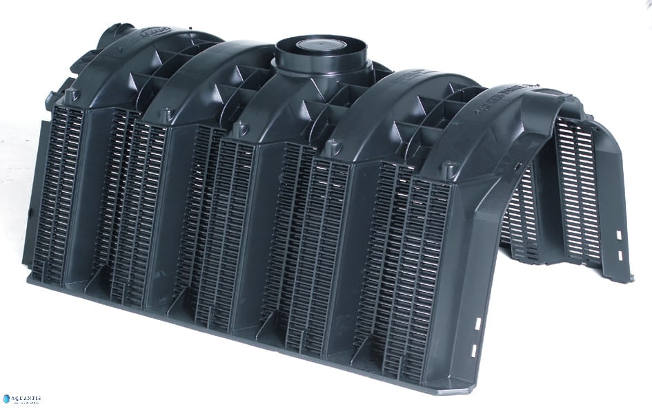 Tunel rozsączający 300 l służy do retencji i rozsączania wód opadowych odprowadzonych z dachów oraz dróg i parkingów wokół budynków.