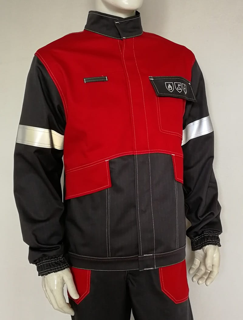 Szycie ubrania roboczego wykonane jest za pomocą nici trudnopalnych.