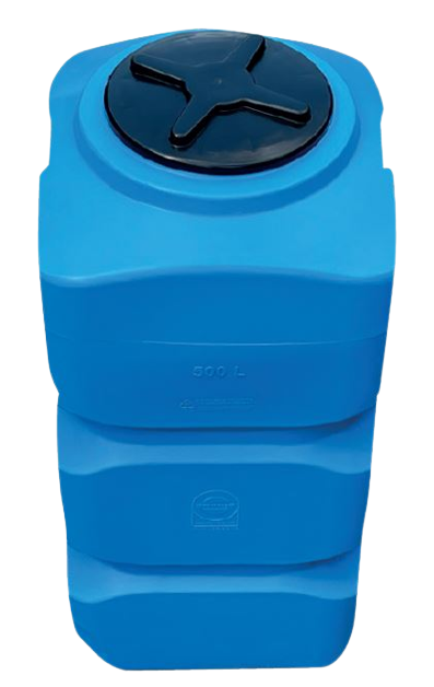 Pionowy pojemnik polietylenowy BK-500 to wąski kwadratowy pojemnik o pojemności 500 l, wysokości 125 cm i