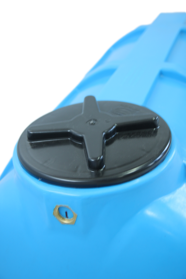 Polietylenowy pojemnik poziomy. Jego pojemność to 250 litrów, wysokość 58 cm, długość 106 cm i szerokość 57