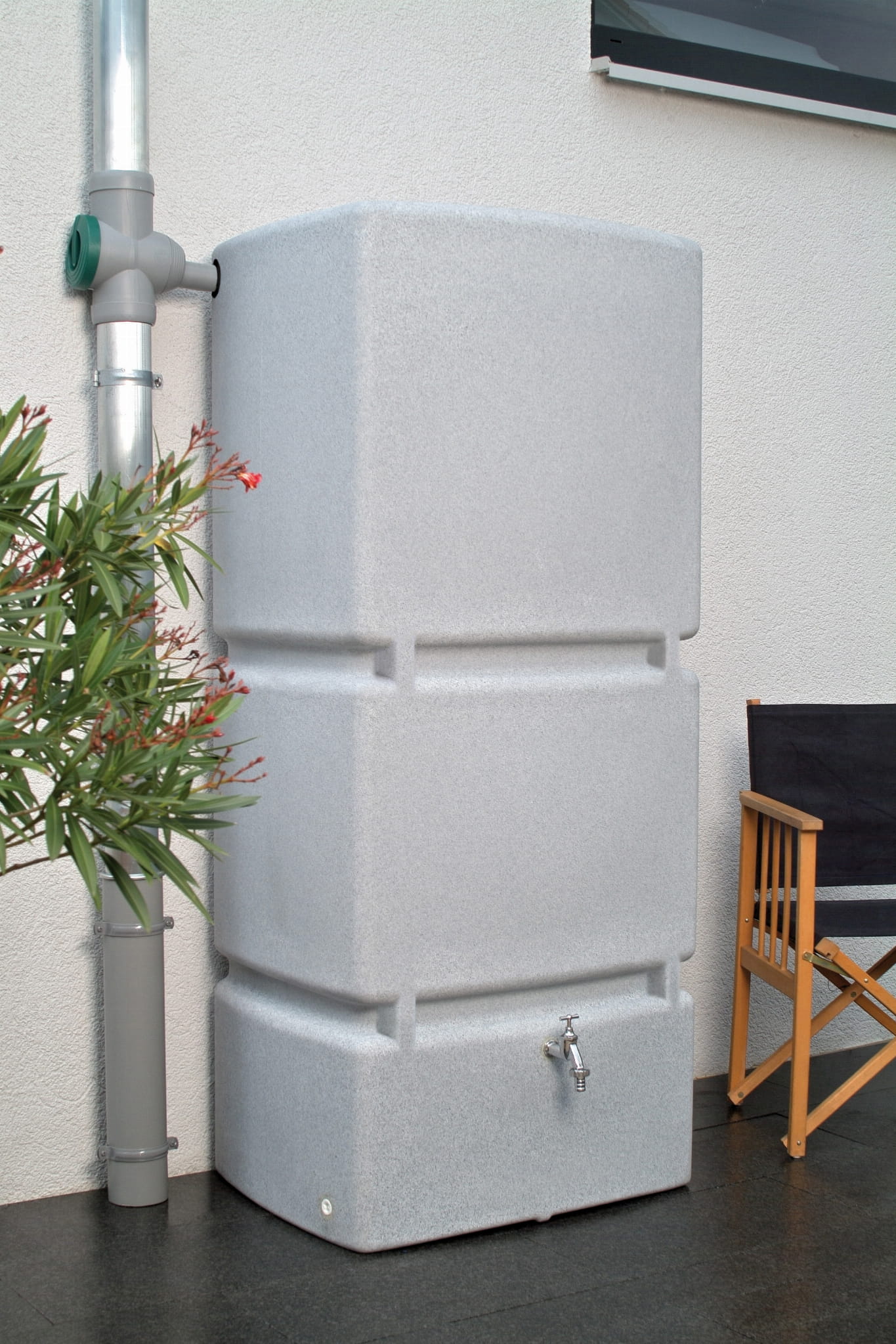 Zbiornik Jumbo jest zbiornikiem przyściennym o dużej pojemności. Jego pojemność magazynowania wody deszczowej to 800 litrów.