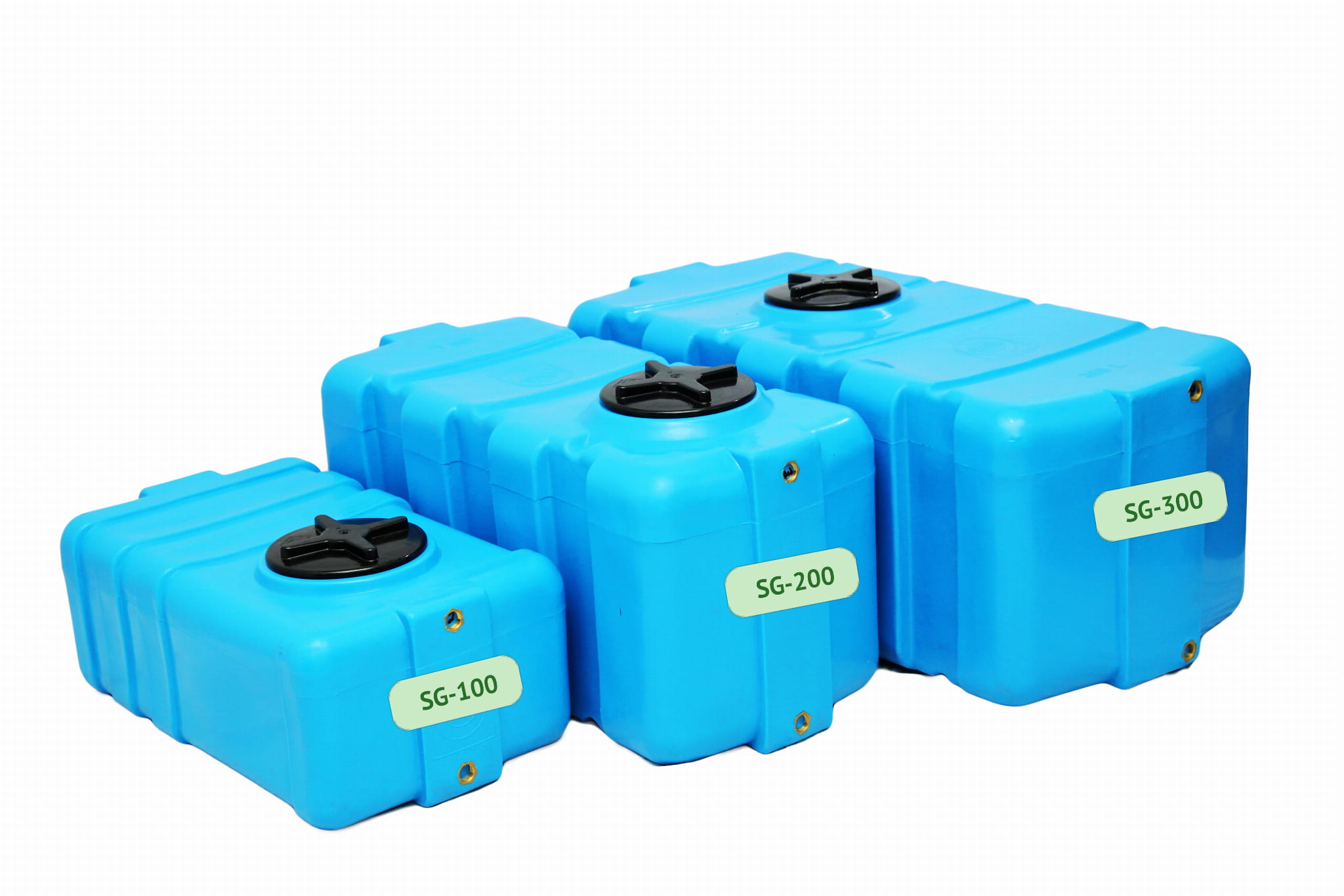 Zbiorniki z tej serii są analogiczne do prostokątnych zbiorników serii SK, różnią się jedynie wagą i rozmiarem. Ta seria zbiorników, podobnie jak seria SK, jest specjalnie zaprojektowana do wygodnego przechowywania produktów. Specjalne zagłębienie w dnie zbiorników odpowiada średnicy pokrywy i zapewnia stabilne umieszczenie zbiorników SG.
