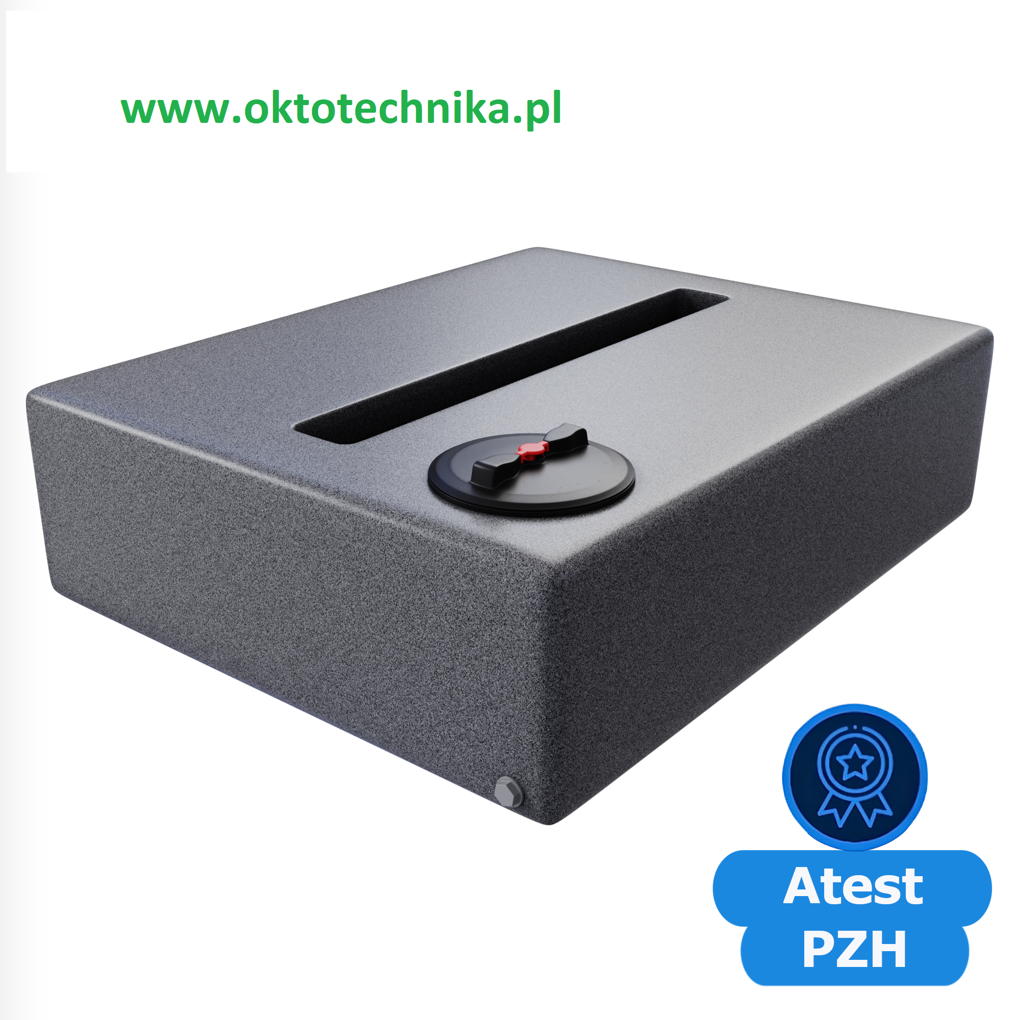 Pojemnik posiada polski atest higieniczny PZH, który uprawnia do kontaktu z wodą pitną.