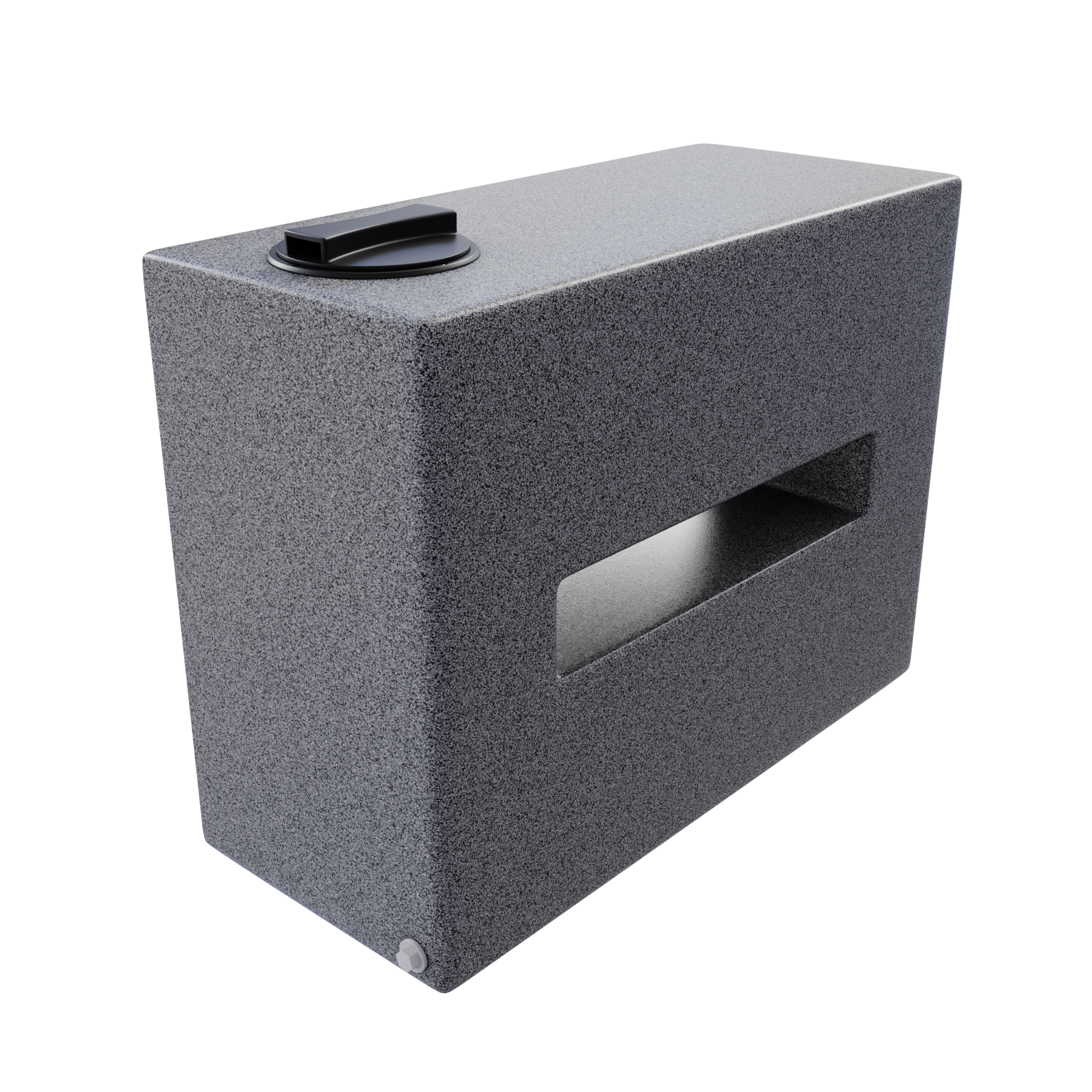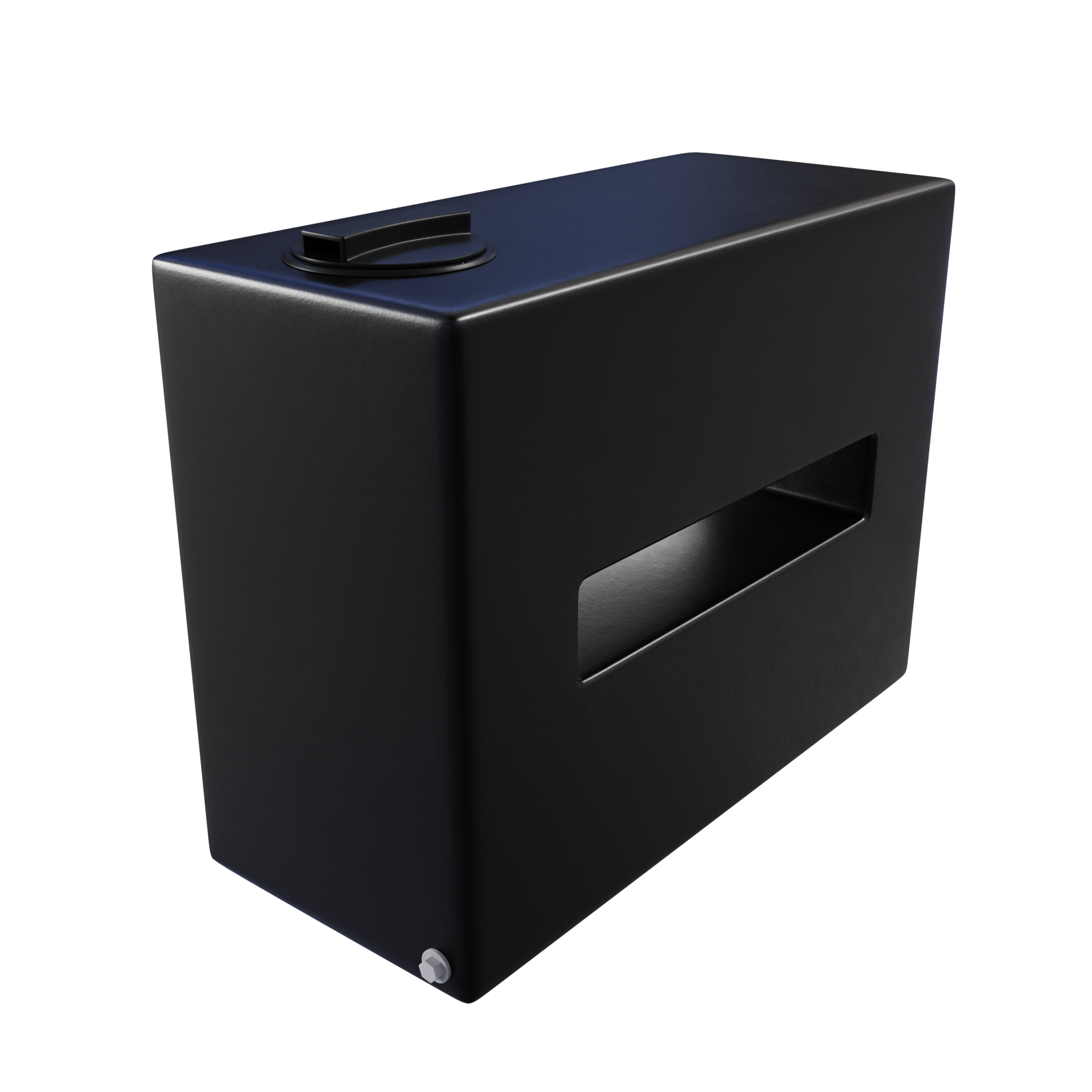 Prostokątny zbiornik plastikowy o pojemności 150 l, wygodny do transportu cieczy, często jest wykorzystywany w kamperach, ciężarówkach, na statkach itp.