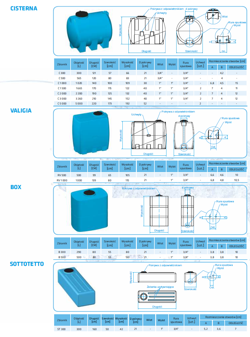 Zbiornik tego typu jest zbiornikiem na wodę pitną lub wodę deszczową. Zbiorniki z serii Verticale swym kształtem przypominają kolumnę są zbiornikami pionowymi. Dzięki zastosowaniu przy produkcji technologii formowania rotacyjnego oraz właściwościom chemiczno-fizyczno-mechanicznym propylenu o wysokiej gęstości (LLDPE), są idealne do magazynowania dużych ilości płynów czy wody. Materiał z którego zbiornik został wykonany jest całkowicie nietoksyczny w związku z czym zbiornik jest bezpieczny dla użytkowników, materiał ten jednocześnie nie sprzyja rozwojowi glonów w cieczach w nich magazynowanych. Ponadto, polietylen jest odporny na zmiany temperatury (od -20 ° C do + 80 ° C) oraz na czynniki atmosferyczne, chemiczne i fizyczne. Polietylen z którego wykonany jest zbiornik, powoduje, że nie występują problemy utleniania lub korozji, które mogą mieć wpływ na właściwości zarówno mechaniczne jak i szczelność zbiornika. Cechy zbiornika jako monolitycznego produkt sprawiają, że jest on w 100% szczelnym zbiornikiem. Inną korzyścią wynikającą z zastosowania polietylenu jest znacznie mniejsza waga samego zbiornika co usprawnia, że jego transport i instalacja jest prostsza i ekonomiczna.