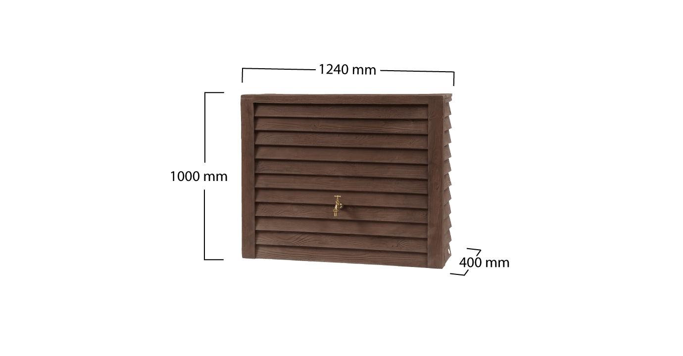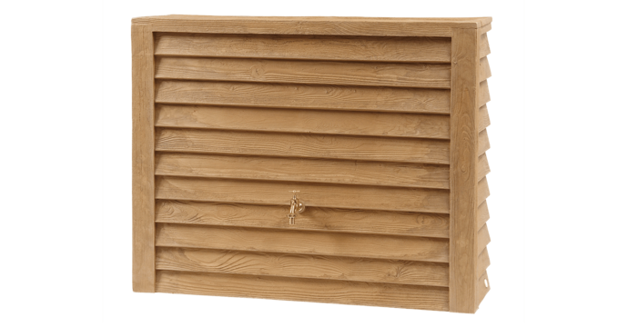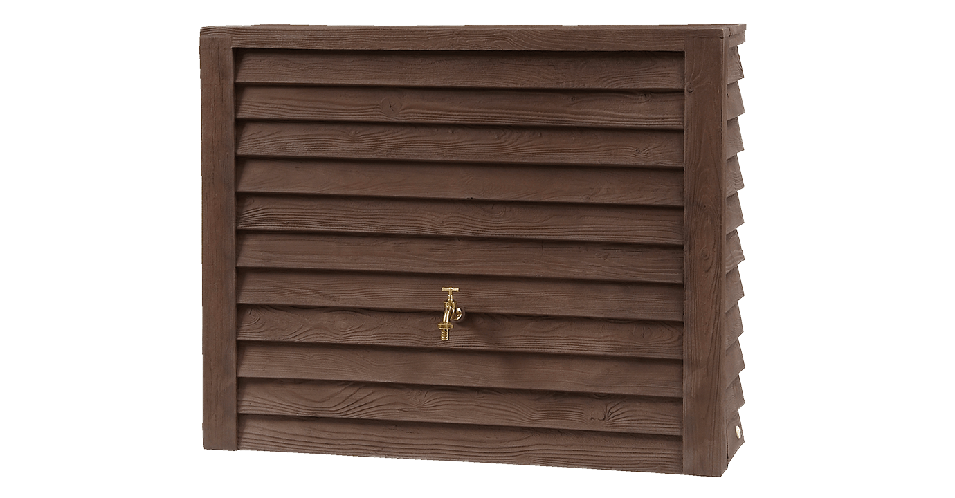 - Wytrzymały dekoracyjny zbiornik na deszczówkę o fakturze drewna