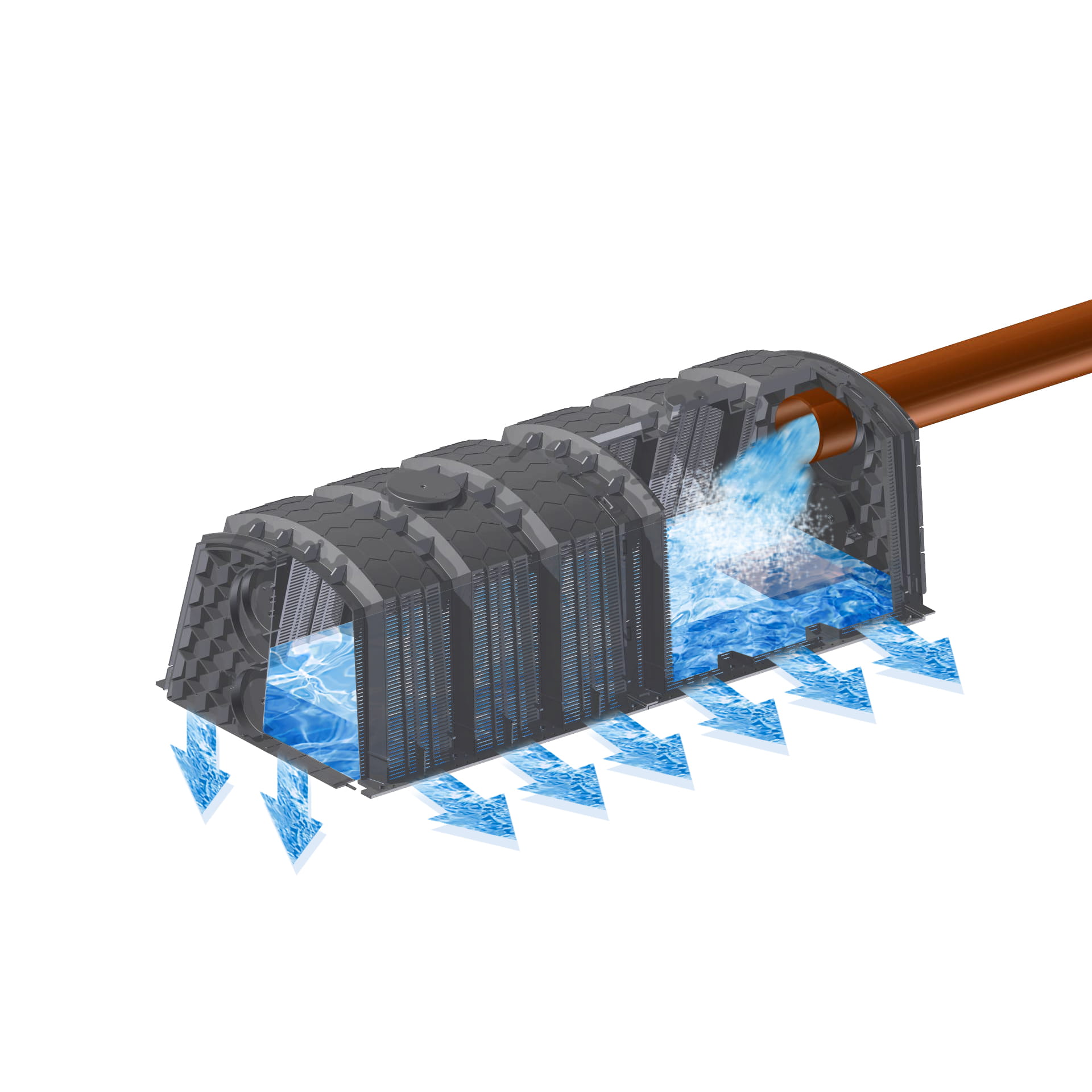 Tunel rozsączajacy Aquabin 150 to uniwersalne i bardzo funkcjonalne rozwiązania - pozwalające odprowadzić nadmiar deszczówki, czy wody z oczyszczalni do gruntu.