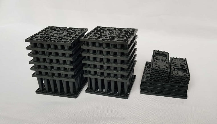 Proponujemy zbiorniki rozsączające (kompletne zestawy) zbudowane z modułów 800/800/350 mm (płyta denna h=40 mm).