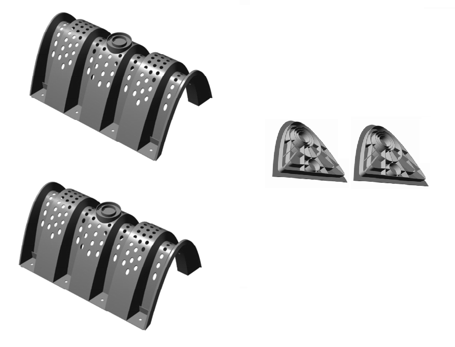 Tunele rozsączające zazwyczaj łączone są po kilka sztuk albo w pionowe układy tuneli albo w poziomie układy tuneli rozsączająch - o różnych wielkościach w zależności od potrzeby to jest od wielkości powierzchni, z której zbierana jest woda.