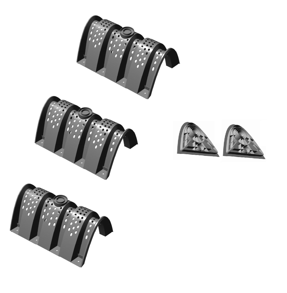 Tunele rozsączające zazwyczaj łączone są po kilka sztuk albo w pionowe układy tuneli albo w poziomie układy tuneli rozsączająch - o różnych wielkościach w zależności od potrzeby to jest od wielkości powierzchni, z której zbierana jest woda.