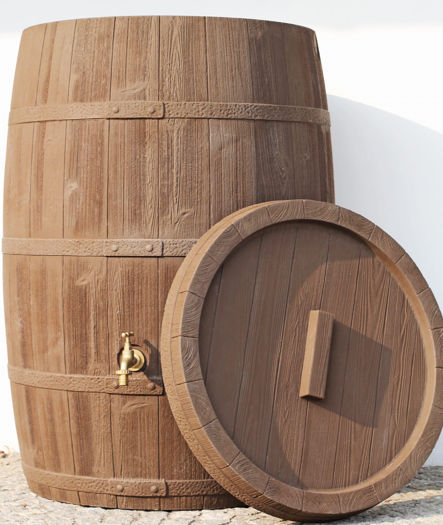 Zbiornik do deszczówki Beczka przypomina swoim wyglądem Baryłkę o klasycznym pięknym kształcie. Realistyczny wygląd i wykończenie zbiornika na deszcz otrzymano w wyniku specjalnej obróbki. Zbiornik wizualnie można nie odróżnić od beczek z innego materiału.