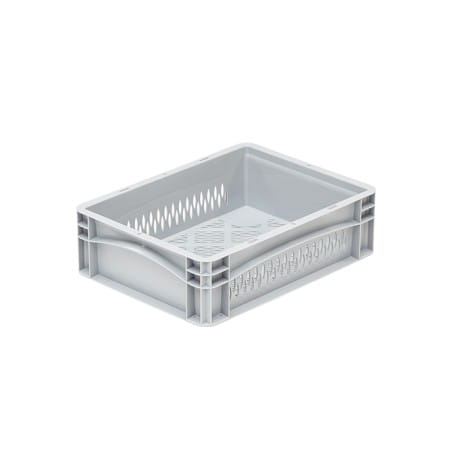 Skrzynki spożywcze są łatwe w czyszczeniu, występują w wersji pełnej i perforowanej. W różnych rozmiarach - opcjonalnie: wymiary dna: 200x150 mm, 300x200 mm, 400x300 mm oraz 600x400 mm. Skrzynki są przeznaczone do ręcznego przenoszenia oraz technologii przenośników automatycznych. Skrzynki są stabilne dzięki wzmocnionej konstrukcji ramowej i narożnej, jednocześnie pojemniki tego typu posiadają ergonomiczne uchwyty na ręce i podlegają w 100% recyklingowi.