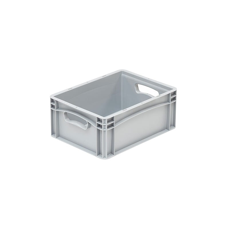 Skrzynki spożywcze są łatwe w czyszczeniu, występują w wersji pełnej i perforowanej. W różnych rozmiarach - opcjonalnie: wymiary dna: 200x150 mm, 300x200 mm, 400x300 mm oraz 600x400 mm. Skrzynki są przeznaczone do ręcznego przenoszenia oraz technologii przenośników automatycznych. Skrzynki są stabilne dzięki wzmocnionej konstrukcji ramowej i narożnej, jednocześnie pojemniki tego typu posiadają ergonomiczne uchwyty na ręce i podlegają w 100% recyklingowi.