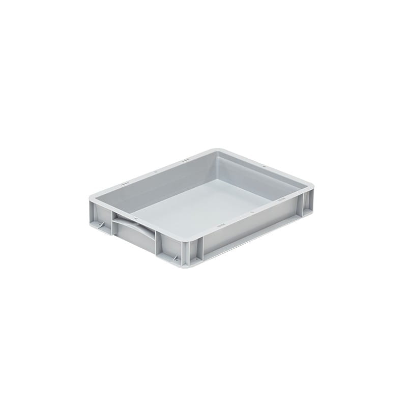 Skrzynki spożywcze są łatwe w czyszczeniu, występują w wersji pełnej i perforowanej. W różnych rozmiarach - opcjonalnie: wymiary dna: 200x150 mm, 300x200 mm, 400x300 mm oraz 600x400 mm. Skrzynki są przeznaczone do ręcznego przenoszenia oraz technologii przenośników automatycznych. Skrzynki są stabilne dzięki wzmocnionej konstrukcji ramowej i narożnej, jednocześnie pojemniki tego typu posiadają ergonomiczne uchwyty na ręce i podlegają w 100% recyklingowi.