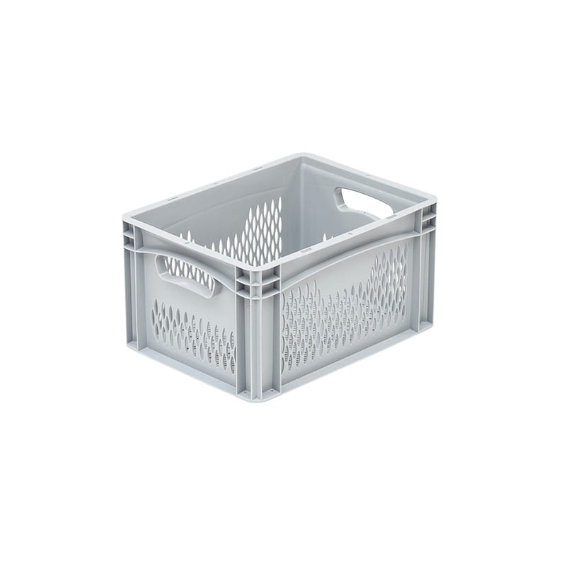 Skrzynki spożywcze są łatwe w czyszczeniu, występują w wersji pełnej i perforowanej. W różnych rozmiarach - opcjonalnie: wymiary dna: 200x150 mm, 300x200 mm, 400x300 mm oraz 600x400 mm. Skrzynki są przeznaczone do ręcznego przenoszenia oraz technologii przenośników automatycznych. Skrzynki są stabilne dzięki wzmocnionej konstrukcji ramowej i narożnej, jednocześnie pojemniki tego typu posiadają ergonomiczne uchwyty na ręce i podlegają w 100% recyklingowi.