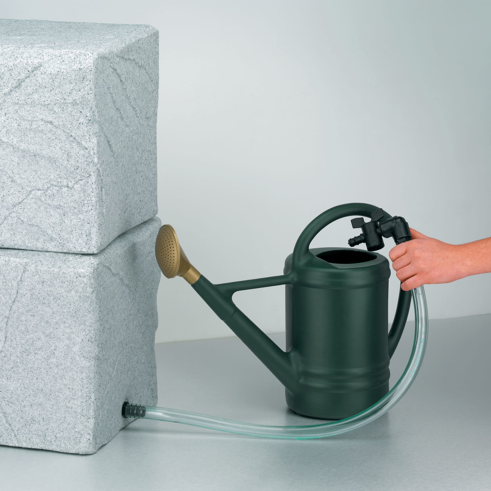 Zestaw do podciśnieniowego poboru wody ze zbiornika na wodę deszczową. Dzięki wężowi umożliwia pobór wody nawet z nisko umieszczonych punktów poboru. Bardzo funkcjonalne uzupełnienie zbiornika na wodę deszczową.